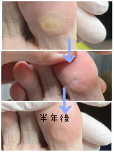 またそれ以上は遅すぎる(数ヶ月空けてしまうとウオノメの芯は奥へ奥へ…….施術も振り出しに戻ってしまいます)