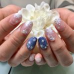2018/03/07ナチュラルカラーのグラデーションにピンクと紫のお花が咲いてます(*´︶`*) 春はお花デザインが人気ですね♪